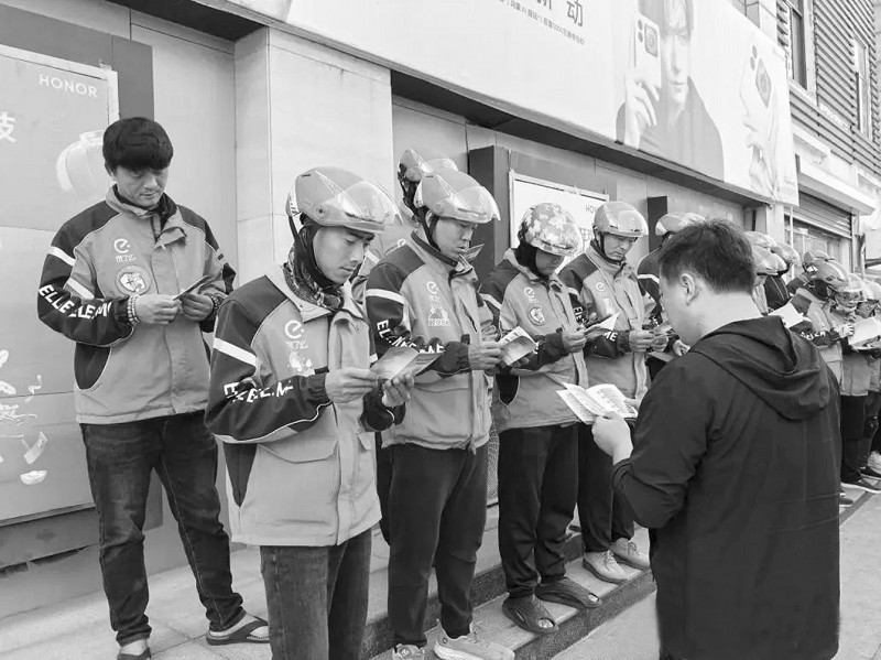 为提升企业和职工对工会组织的认知度,增强企业和职工对民主管理制度的知晓率,淄博市临淄区总工会日前设计印制了2000册《建会入会和依靠职工办企业“小口袋书”》,帮助企业和职工群众随时随地了解工会的性质、职能和作用,提高企业建会和职工入会积极性,营造浓厚的企事业民主管理工作氛围。图为工作人员向饿了么外卖骑手介绍“小口袋书”。