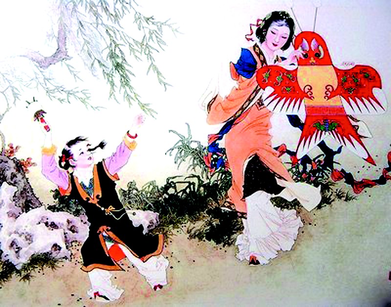 “草长莺飞二月天,拂堤杨柳醉春烟。儿童散学归来早,忙趁东风放纸鸢。”清代高鼎的 《村居》描写的是最富童趣的放风筝。春回大地,草长莺飞,微风吹来,杨柳姑娘被美好的春色陶醉了,她拿长长的辫子轻拂堤岸。一群散学归来的孩子都像约好了似的,纷纷走出来,举着各种各样的风筝,兴高采烈地在春风里跑着,笑着……他们的欢声笑语使春天更富有朝气。
