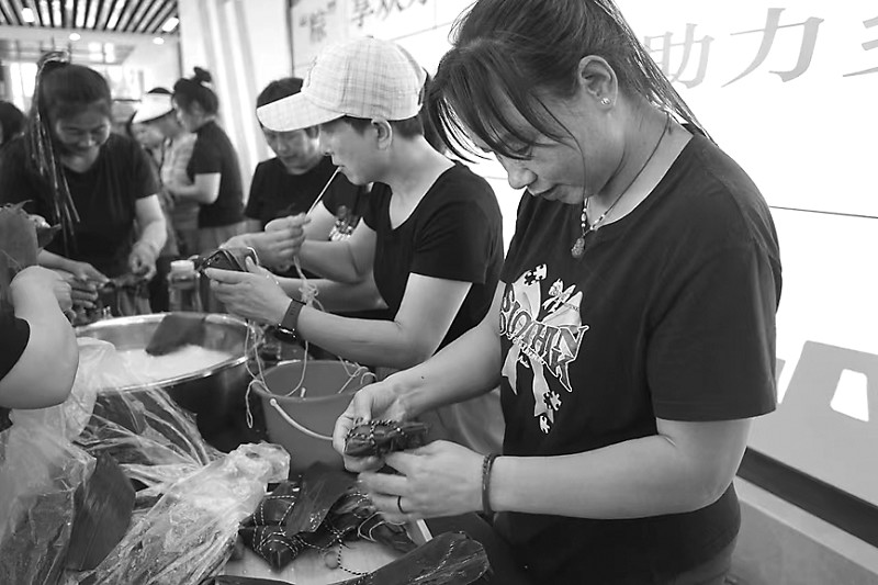近日,高密市总工会在省级工友创业园丽珠源种植专业合作社举办“‘粽’享欢乐 你最出‘粽’”包粽子技能大赛,近百名合作社职工、村民及企业一线职工参与。比赛现场,8支参赛队伍展开巧手比拼,折叠粽叶、填米、压实等动作行云流水,粽叶清香与欢声笑语、计时器滴答声交织,营造出紧张而有趣的氛围。 (本报通讯员 王烨 摄)
