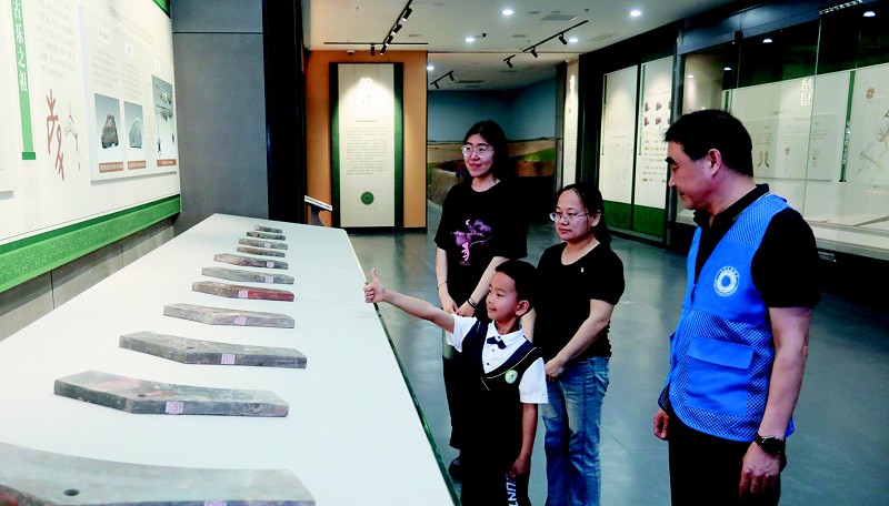 日前,阳信县西北村战国墓展厅展出了距今2000多年的战国早期珍贵文物200余。其中有国家一级文物石磬一套13件,还有大量陶器、铜器。石磬造型规整,尺寸有序排列,为青色石灰岩磨制,音律规范,符合齐国“大吕律”。该展厅填补了黄河三角洲及山东地区战国乐器研究的空白,对研究战国礼乐制度及区域文化交流具有重要意义。 (本报通讯员 霍向锋 摄)