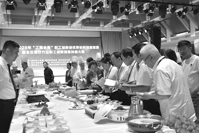 5月27日,淄博市周村区总工会举办周村区餐饮行业职工创新创意技能大赛,吸引了全区13家餐饮企业、78名从业3年以上职工参赛,经过中式烹调、中式面点两大项目的比拼,最终决出一、二、三等奖和优秀组织奖,并对符合条件的第一名获得者优先推荐选树“周村工匠”。本次竞赛作为周村区职工劳动和技能竞赛的首场赛事,强化了企业技能人才培育责任,形成以赛促培、以赛促建的良好氛围,助力技能人才队伍高质量发展。 (本报通讯员 王鑫雨 摄)