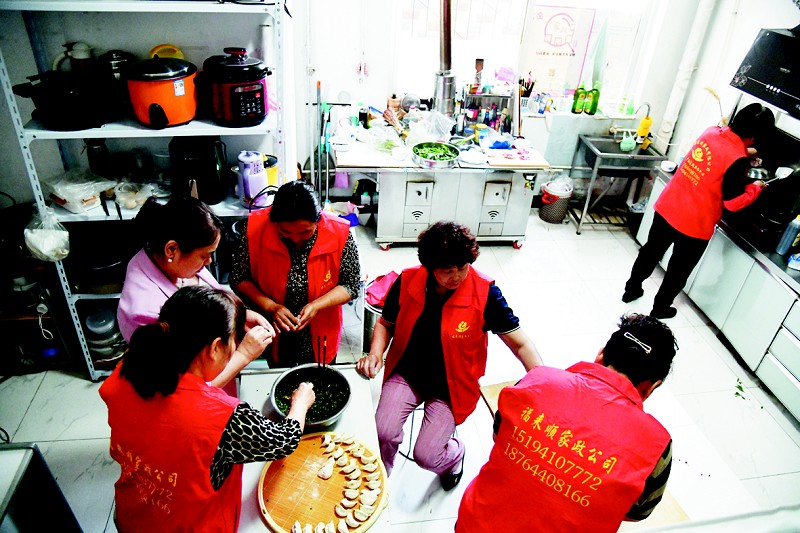 家政公司的工作人员在练习包饺子