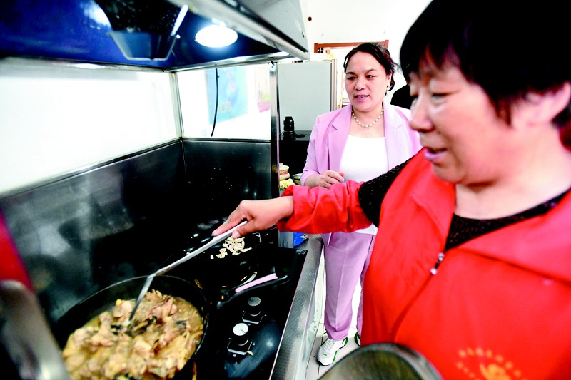 接受培训的家政人员在学做菜