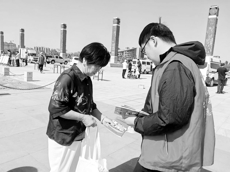 日前,曹县总工会在县人民广场举行“安全生产月”宣传咨询日活动。工作人员通过设立咨询处、发放安全知识明白纸等资料,向过往群众宣传安全生产法律法规、劳动保护、职业病防治系列知识,并现场解答职工群众关心的安全生产问题。活动共发放相关宣传资料500余份,接受咨询100余人次。 (本报通讯员 李哲 摄)