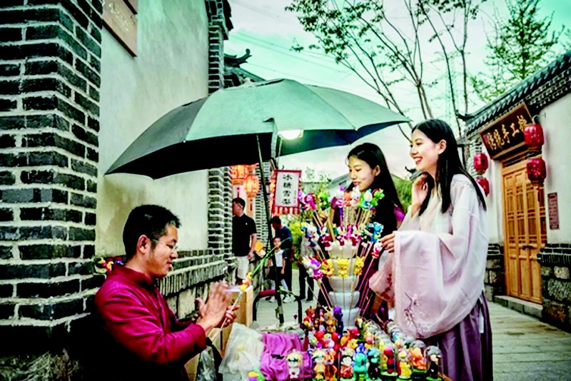 村里古老的建筑群落再现了昔日市井繁华景象,让游客在漫步间仿佛穿越回那个车马慢行、商贾云集的时代。小镇还汇聚了各种地方小吃,不管是手工煎饼、石磨豆浆、老式麻糖等手作美食,还是烤鱼、炸串、炸豆皮等网红小吃,一应俱全。