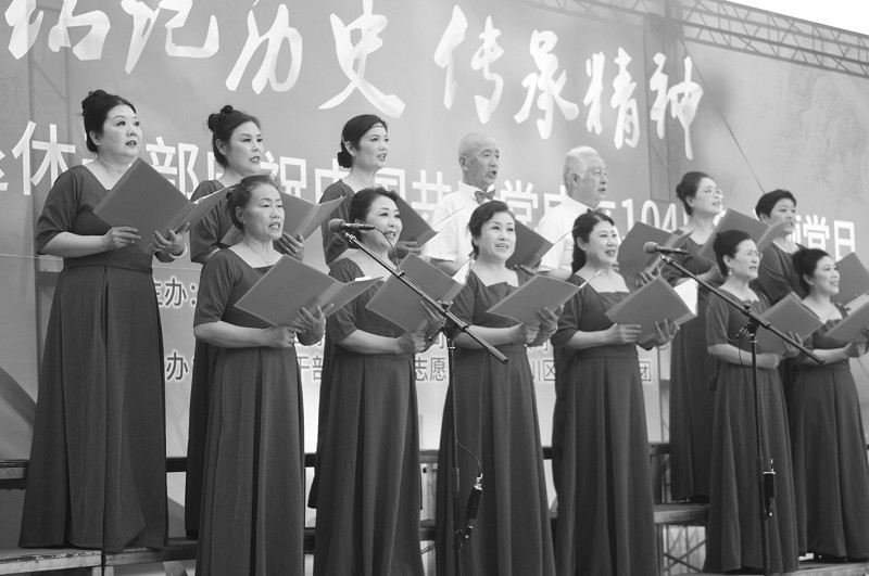 当日,260名老干部志愿者用舞蹈、京剧、诵读、旗袍走秀等丰富多彩的节目庆祝“七一”,讴歌新时代。该艺术团成立于2022年7月,全部由老年志愿者组成。他们经常自编自演节目,深入乡村、社区、厂矿企业等传递正能量。