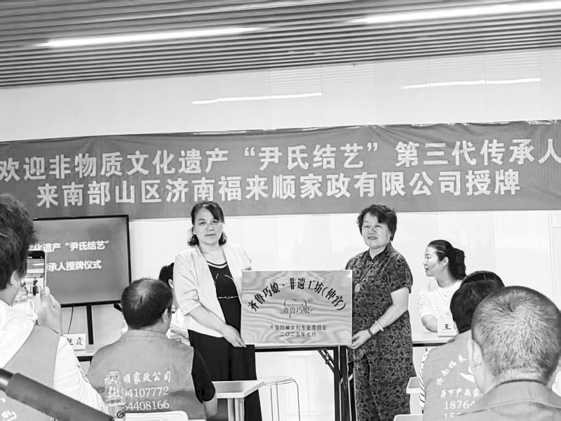 7月6日,一项凝聚着几代人心血的“老行当”——济南市级非物质文化遗产代表性项目“尹氏结艺”,在经严格评审后,正式授牌济南福来顺家政有限公司。