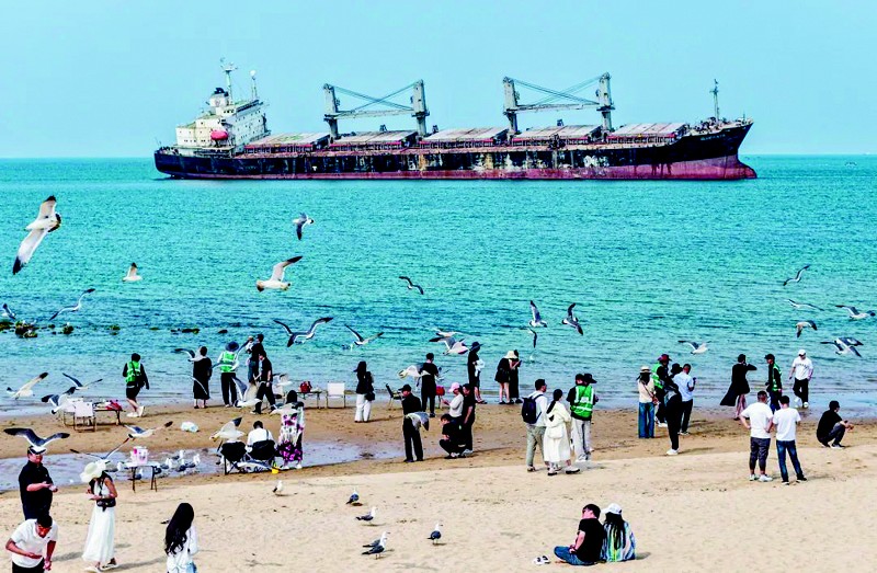 这里,香海钻石沙滩的沙质细腻,海水清澈见底,夏季可以体验帆船、摩托艇等水上项目。不远处的布鲁威斯号船体与碧海蓝天形成反差,能让游客轻松拍出电影感大片。 (本报通讯员 肖奕 摄)