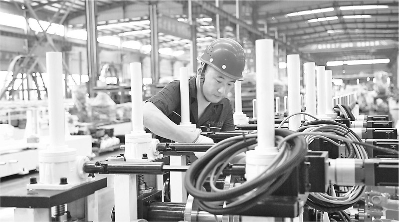 近日,在位于菏泽市的山东金博利达精密机械有限公司生产车间,工人正在生产线上作业。该公司全自动光伏支架生产线经过开卷、成型、冲孔、码垛等工序,从带钢变成C形/U形光伏支架,全程最快只需要十几秒钟。金博利达已成功入选“山东省制造业单项冠军”。 (本报通讯员 王兆锋 孙安琪 摄)
