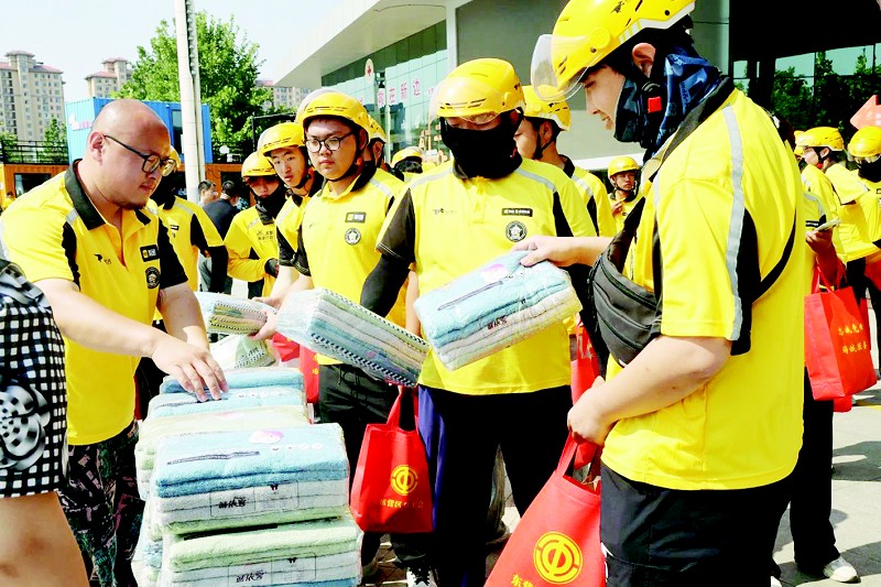 为切实做好防暑降温工作,保障劳动者健康权益,7月18日,东营市总工会在东营区新业态新就业群体党群服务中心组织开展“工会送清凉、防暑保安康”慰问活动,为100余名美团外卖骑手、e代驾等新就业形态劳动者送去花露水、茶叶、矿泉水、毛巾等防暑降温物资,将工会组织的关怀送到一线劳动者身边。图为活动现场。 (本报通讯员 杨洁 摄)