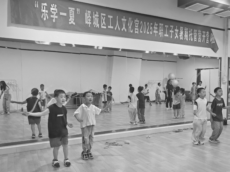 近日,枣庄市峄城区工人文化宫里“乐学一夏”暑期职工子女托管营的孩子们在练习跳绳。暑假来临,为让职工子女度过一个充实快乐的暑假,枣庄市各级工会组织开展了形式多样的职工子女爱心托管服务,解决职工子女假期看护难题。(孙祯 本报通讯员 田依雪 摄)