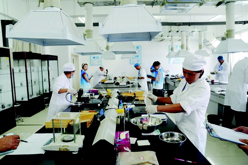 8月13日至14日,由省总工会主办,省石油化学工会、泰安市总工会、省医药行业协会组织,泰安市石化医药工会、山东医药技师学院承办的第四届全国中药传统名堂职业技能竞赛山东赛区选拔赛在山东医药技师学院举办。竞赛设置中药理论、水泛丸制作、蜜丸制作和中药饮片切制等项目,综合总分前3名的选手将代表山东参加全国总决赛。图为比赛现场。