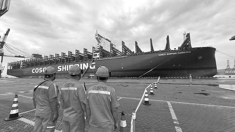 “中远海运康乃馨”轮8月14日在山东港口青岛港完成210吨甲醇加注作业,标志着船用甲醇加注业务在该港落地。该港成为同时具备生物燃料、甲醇加注能力的港口,其绿色能源加注能力再提升,绿色船燃供应更畅通。与传统燃油相比,甲醇具有良好的环保性能,并具备可再生性。在全球绿色航运转型浪潮中,甲醇正以可控性强、适配性高的优势获得越来越多船东的青睐。 (本报通讯员 黄向东 摄)