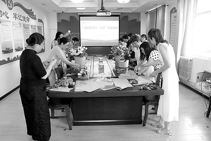 为弘扬传统文化,丰富职工文化生活,8月21日,青岛胶州自来水有限公司举办“七夕花语”主题插花活动。此次活动吸引了公司各部门职工积极参与,大家相互交流插花技巧,分享创作心得。图为活动现场。