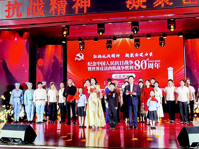 8月30日,由枣庄市总工会主办,枣庄市礼仪文化行业协会、市工人文化宫、峄城区工人文化宫和山东丰源集团等承办的纪念中国人民抗日战争暨世界反法西斯战争胜利80周年诗歌朗诵会在山东丰源集团股份有限公司举办。此次活动也是枣庄市总工会“文化惠企”专场活动,以“弘扬抗战精神 凝聚奋进力量”为主题,50余名朗诵爱好者参与活动。