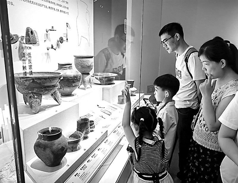 最近,不少家长赶在新学期来临之前带孩子来青州博物馆参观。