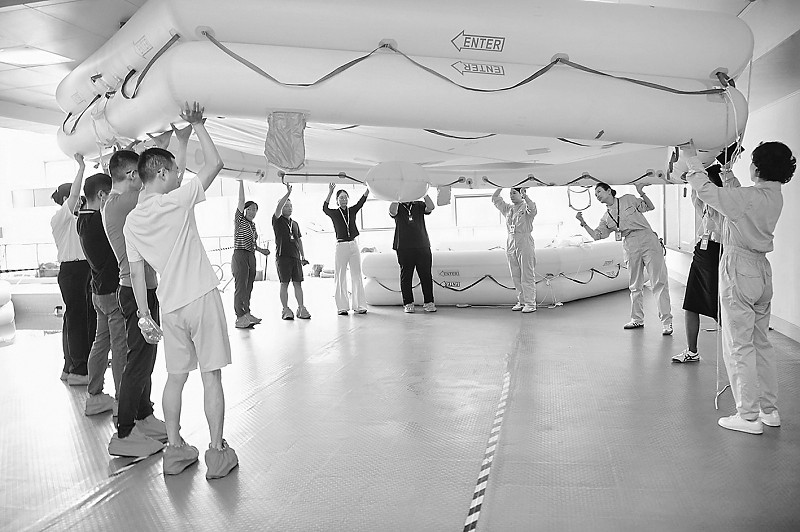 8月30日, “知音礼遇,云翼相随——2025年国航系凤凰知音贵宾交流活动”在青岛举行。本次活动由山东航空主办,并协同中国国际航空、深圳航空、澳门航空及昆明航空共同开展。来自全国各地的20余位凤凰知音贵宾会员应邀齐聚山航青岛培训部,深度参与系列航空飞行模拟项目,共叙情谊、共话未来。图为会员参与客舱及紧急逃生的演练。