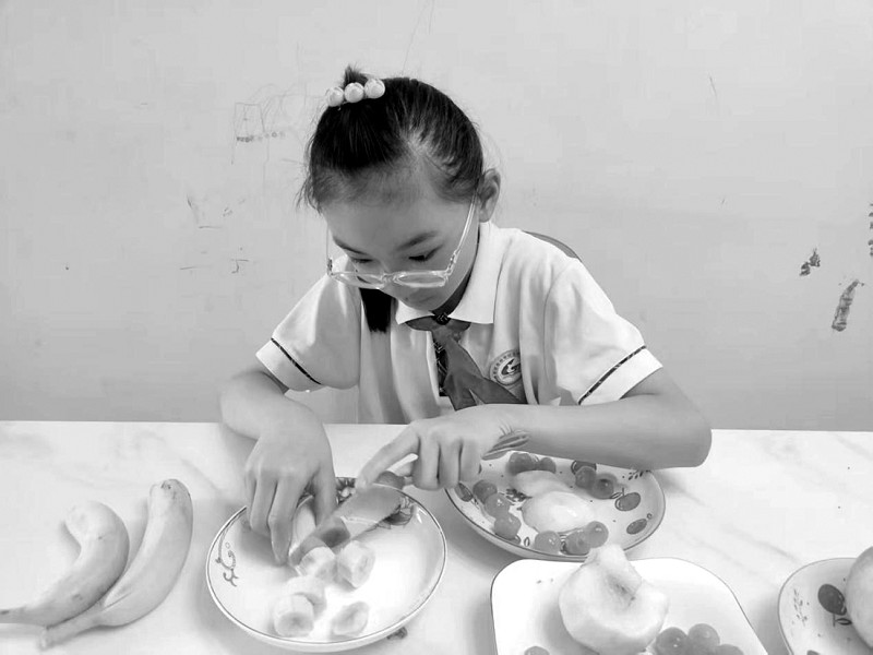 今年暑假期间,枣庄市光明路小学开展“变废为宝”“自制消暑美食”“养绿护绿”等一系列暑期劳动实践活动,让学生们在趣味劳动中收获技能与成长,在动手实践中度过一个充实有趣的假期。图为小学生在自制水果拼盘。