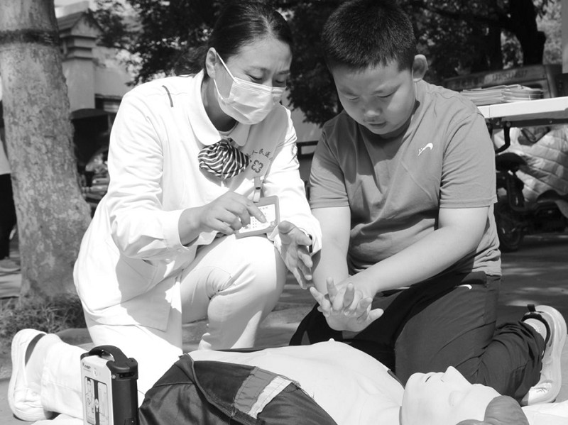 9月13日,高青县人民医院急诊科医务人员在街道开展“人人学急救”活动。活动中,医务人员向群众科普急救知识、传授心肺复苏等应急救护技能,提高群众紧急避险意识和自救互救能力。(本报通讯员 张磊 张龙 摄)