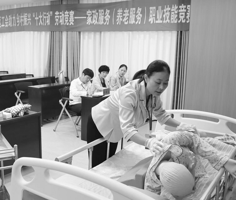 为持续锚定乡村振兴与民生服务协同发展目标,枣庄市总工会于近日举办了工会助力乡村振兴“十大行动”劳动竞赛——家政服务(养老服务)职业技能竞赛。比赛采用“理论考核+实操模拟”的考评模式,围绕养老服务政策法规、老年人生活照料、保健与护理和康复训练等内容,全方位考核选手专业知识储备和实操技能。图为竞赛现场。 (孙祯 通讯员 贾灿 摄)