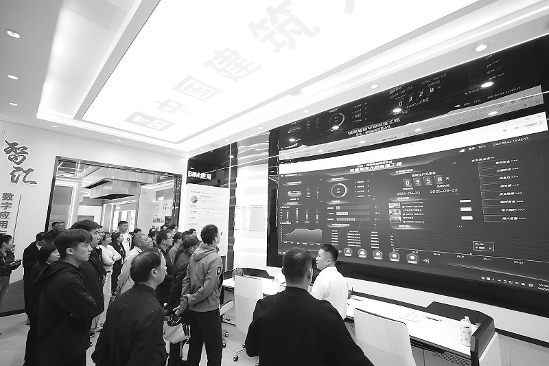 9月23日,中建八局“走进·铁军精神”大型主题文化宣贯活动暨“同筑·走基层”慰问演出在济南举办。活动以“赓续百年荣光,共谱时代新篇”为主题,通过文艺演出、劳模宣讲、工友表彰、家属开放日等多元形式,将文化资源直接送至项目一线。活动当天,中建八局特别策划了“工友家属开放日”活动,邀请21个工友家庭走进凤凰黄河大桥南延工程项目现场,现场设立的“农民工公益服务亭”提供健康检测、全家福拍摄等贴心服务,工友与家属还在职工食堂共进温馨晚餐。图为家属们参观项目展厅与铁军文化展区。 (本报通讯员 郝心舒 梁杰 摄)