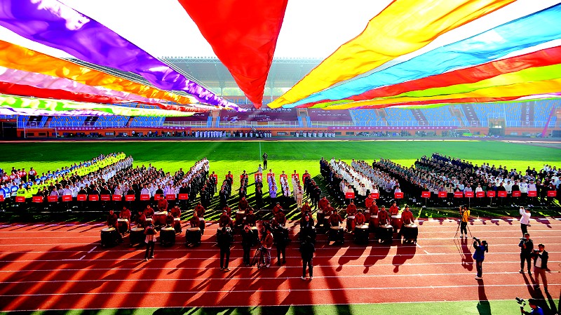 10月14日上午,青岛市第四十一届职工运动会在青岛天泰体育场开幕。