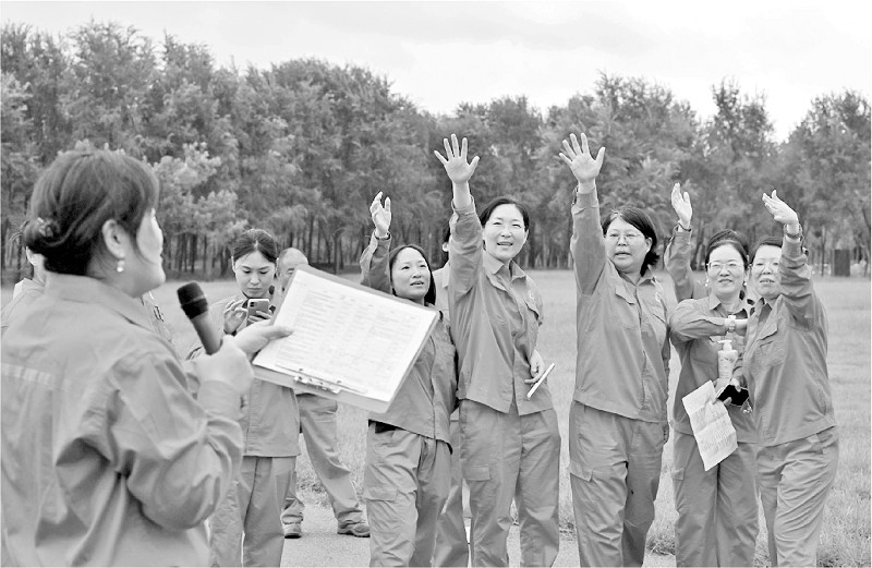 近日,在东营广利河森林湿地公园,胜利油田现河采油厂六户采油管理区组织员工进行绿色生产知识有奖问答。