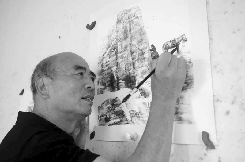 他亲自设计的东牛角县委书记纪念馆壁画,融入了自己对家乡的深厚情感。每一笔都饱含着他对这片土地的热爱与赞美。目前,他正全身心地投入到为家乡创作108米山水长卷的工作中。他专攻水墨画,独创了 “龟文皴”手法,用这种独特的手法来表现五股泉的风光,将山水的灵动与韵味展现得淋漓尽致。他的作品吸引了不少画家慕名而来,纷纷到五股泉村写生创作。
