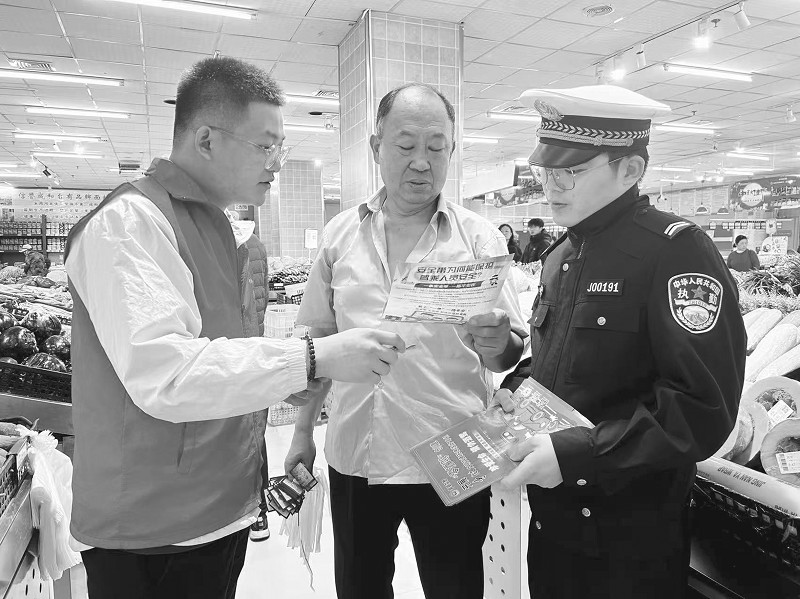 为进一步加强“百日集中整治行动”宣传警示工作,全面提升交通参与者安全意识,有效预防和减少交通事故的发生,近日,莘县公安局交通管理大队宣传民警走进超市开展交通安全宣传活动,提醒大家要摒弃侥幸心理,自觉遵守交规,把“平安”带回家。 (本报通讯员 冯永华 摄)