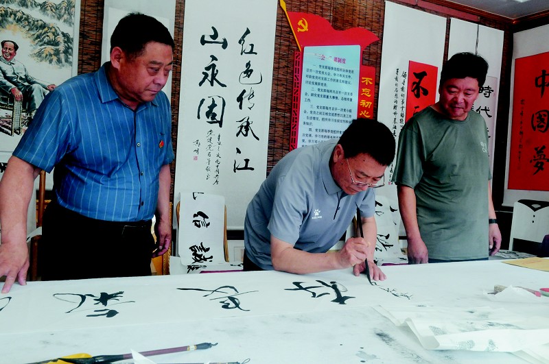 书画爱好者在展览馆挥毫泼墨,以铭记历史
