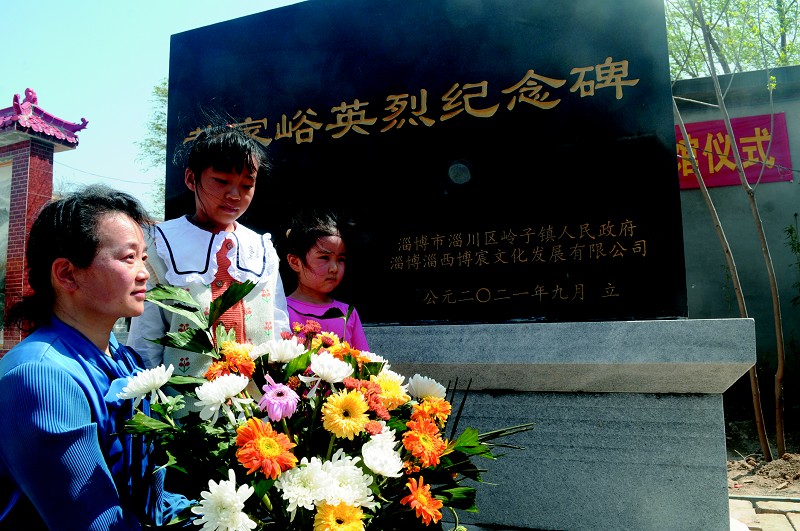 市民在向黄家峪英烈纪念碑敬献花篮