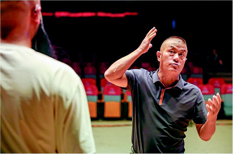 排练中,团长伊平君指导实习演员