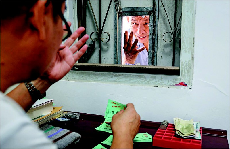 在剧院售票口,一位老人一下买了4张票,请老友们看戏