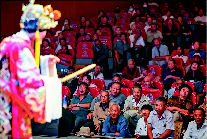 9月15日下午,剧场门口早聚满人。老戏迷唠嗑猜谁是周瑜的扮演者,售票窗口排着队,售票员喊: “别挤,一块钱一张都有票!”一点四十分门没全开,就有人探头瞅,怕占不着好座。鼓点一响,剧场满座,连过道都坐满了人。 “一元剧场”2019年开办,已演出400余场戏,《樊梨花征西》 《刘墉铡西宫》都是百姓爱听的。县里每场给补贴,6年投入260余万,吸引了20多万人次观看。