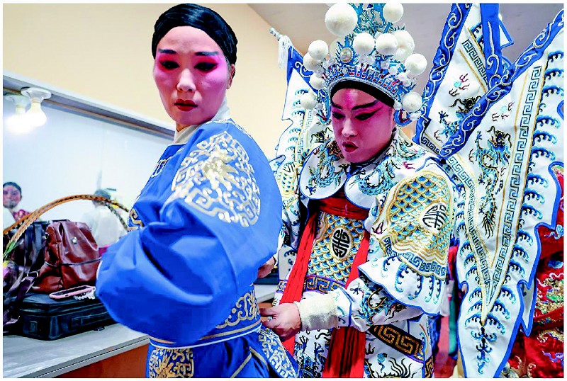 9月16日,雨下一天,搅了下乡计划。曹县郭楼村书记连打电话: “老少爷们儿等着呢!”17日天还阴,伊平君早到剧场装车: “不能让戏迷空欢喜。”剧团除每月两场 “一元戏”,一年还得下乡演500多场,今年春、夏演了300多场,秋冬季也开演了。大巴到郭楼村,村民早早搬凳扛椅等着。剧团的演员们下车就忙,俩钟头戏,掌声没断。戏完村里管饭,鸡肉炖粉皮配馒头管够,演员们坐广场吃得香。