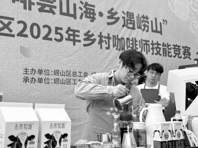 日前,青岛市崂山区总工会联合区文化和旅游局举办乡村咖啡师技能竞赛。本次竞赛围绕乡村振兴主题,以咖啡文化为纽带,吸引了全区多家乡村咖啡馆、民宿及返乡创业青年积极参与。图为比赛现场。 (本报通讯员 蓝天翔 孙明天 摄)