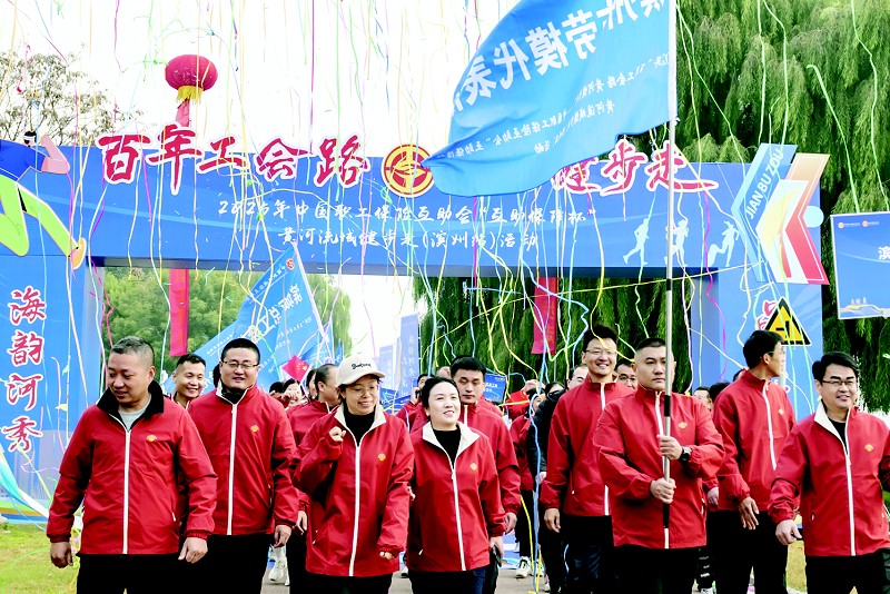 10月25日,“百年工会路 黄河健步走”——中国职工保险互助会“互助保障杯”黄河流域健步走(滨州站)活动在滨州市黄河小街湾举行。来自各县(市、区)总工会代表队、滨州市劳模代表队、相关单位及企事业单位代表队的17支队伍、700余名职工参加活动。其中,由各级劳模组成的代表队成为活动中的一道亮丽风景线,
