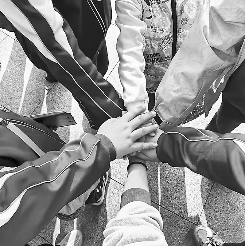 11月1日,济南舜耕中学36级学子在以 “探秘佛慧山,乐享秋时光”为主题的秋季研学实践活动中,互相加油打气。