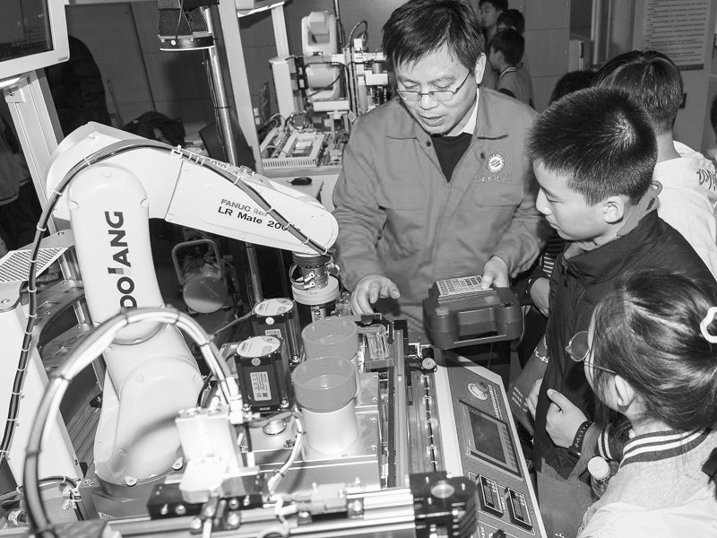 11月22日,淄博市淄川经济开发区实验学校330名小学生走进山东水利技师学院,在智能制造系、水利工程系、康养产业学院等院系实训场地,开展职业启蒙教育。学生们通过观摩操作智能工业机器人、聆听无人机原理讲解、辨识人体经络穴位等沉浸式体验,近距离感知前沿科技,初步构建起对职业世界的认知框架。 (本报通讯员 翟慎安 摄)