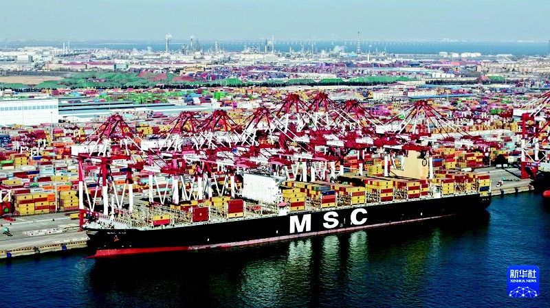据介绍,今年以来,青岛港持续织密国际物流航线网络,近240条航线覆盖全球180多个国家和地区的700多个港口,推动“新三样”、高端设备、精密仪器等高附加值货种驶向全球,成为中国与新兴市场贸易往来的“黄金通道”。 (新华社记者 李紫恒 摄)