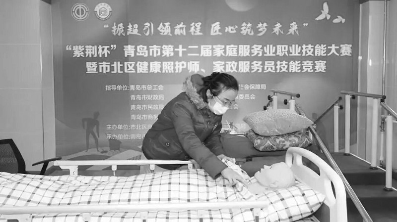 日前,“紫荆杯”青岛市第十二届家庭服务业职业技能大赛暨“振超引领前程 匠心筑梦未来”市北区健康照护师、家政服务员技能竞赛在青岛市工人文化宫举办。本次竞赛设健康照护师、家政服务员职业(工种)两个赛项,通过设置真实场景,全方位考验选手的专业能力。其中,健康照护师赛项聚焦生活照护、基础护理、心理支持等环节;家政服务员赛项则涵盖家政服务、家居收纳、综合管理等方面,覆盖面广、专业性强。图为比赛现场。 (本报通讯员 宋丽梅 摄)