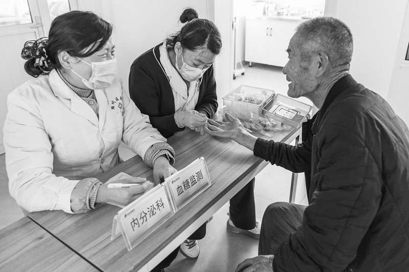 12月9日,淄博市淄川区岭子镇下店村,医护人员在为村民问诊。