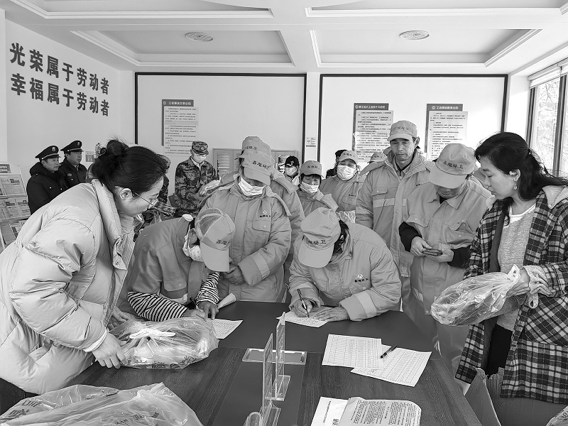 近日,桓台县总工会以 “情暖冬日 工会护航”为主题启动户外劳动者关爱行动,为全县环卫工人、快递员、外卖骑手等一线户外劳动者代表,集中发放雨衣、保暖手套、围巾等 “御寒暖心包”76份,用实打实的举措为寒冬里坚守岗位的他们筑起一道坚实的 “温暖防线”。 (本报通讯员 李晓 庞钰昕 摄)