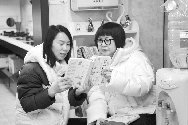 12月24日,市民正在淄博市淄川区般阳东升超市读书。