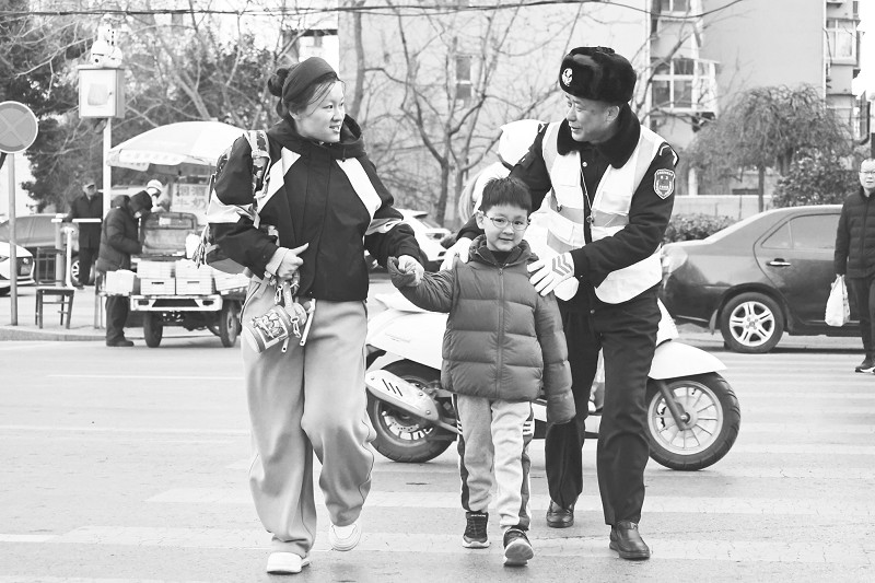 1月6日早7点,在济南市历城区新村中路,济钢保卫部志愿者组成的护学队伍准时上岗。他们身着统一服装,手持引导指示牌,在学校周边路口疏导行人、指挥车辆,维护交通秩序,为孩子们平安出行保驾护航。