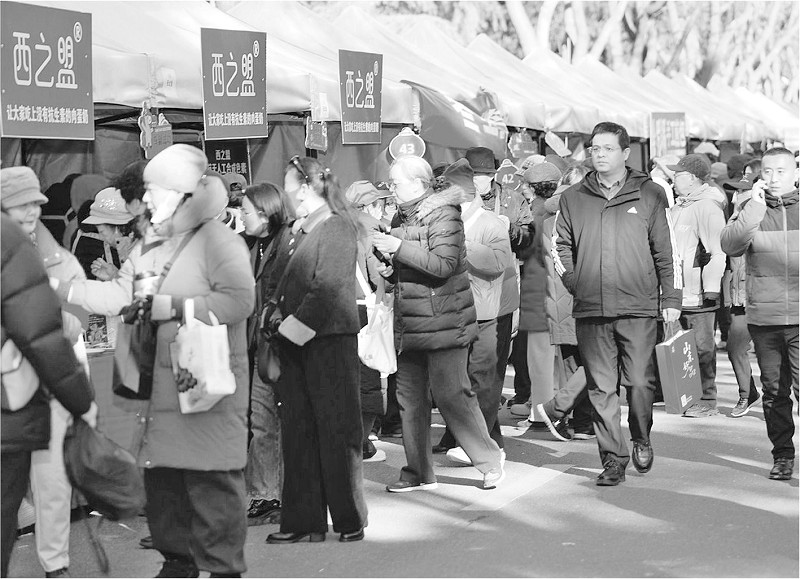 近日, “南郊文旅市集”启动暨 “好客山东 山东好品”电商平台发布活动在济南举行。从本周开始,市集实行每周六、周日常态化运营。 “南郊文旅市集”是山东南郊集团发挥园林式宾馆场地优势,实现 “政务空间”向 “城市文旅会客厅”转型的探索。市集汇聚全省16市名优特产,涵盖济南鲁味斋、薛记炒货、德州扒鸡等千余款知名品牌系列产品,引入非遗手作、中华老字号美食、智慧科技体验等多元业态,构建 “可逛、可尝、可玩、可购”的沉浸式消费场景。图为市民在 “南郊文旅市集”上选购名优特产。 (本报通讯员 陈晓婉 摄)