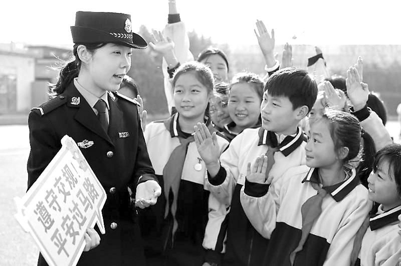 1月10日,是第6个中国人民警察节。连日来,枣庄市公安局市中分局组织民警、辅警走进校园开展形式多样的主题活动,以寓教于乐的方式向师生们宣传法律知识,迎接中国人民警察节。 (本报通讯员 孙中喆 李明 摄)