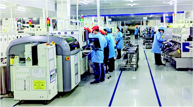 当前经济形势面临复杂环境,部分行业承压较大。菏泽明确企业转型升级的关键在于 “深耕”而非 “转行”,鼓励利用数字技术对研发、生产、管理、营销各环节进行全方位、全链条改造,从生产端的智能制造到流通端的平台经济,数字化已渗透到企业运营的各个环节。图为在山东英搏尔电气有限公司智能化生产车间,通过MES、ERP、PLM等系统的使用,实现了制造全程一体化管理以及生产数据实时追踪。 (本报通讯员 赵念东 摄)