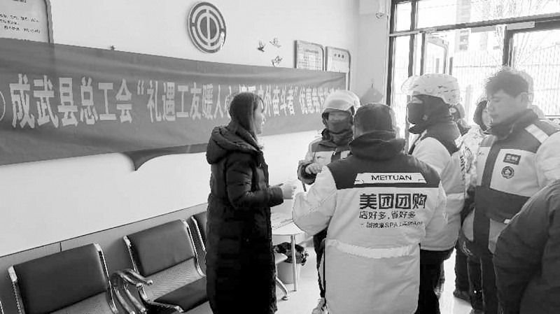 近日,成武县总工会开展“礼遇工友暖人心 情系户外奋斗者”优惠券发放活动,旨在将工会关怀精准送达户外劳动者身边,缓解其日常消费压力,增强获得感与归属感。活动重点覆盖环卫工人、外卖配送员、快递员等户外岗位职工。(本报通讯员 李静 摄)