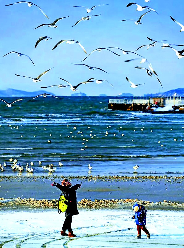 烟台的冬天,不仅有海、有雪,还有海鸥。漫步在黄海游乐城、粉色沙滩、八仙过海等景区,抬眼望去,海面上波光粼粼,一群群海鸥在雪与海的交织中自由自在地翱翔。它们时而轻盈地掠过海面,泛起一圈圈小小的涟漪;时而冲向天空,在纷飞的雪花中穿梭,仿佛在与雪花共舞,演奏着一曲冬日的欢歌。 (本报通讯员李燕 摄)